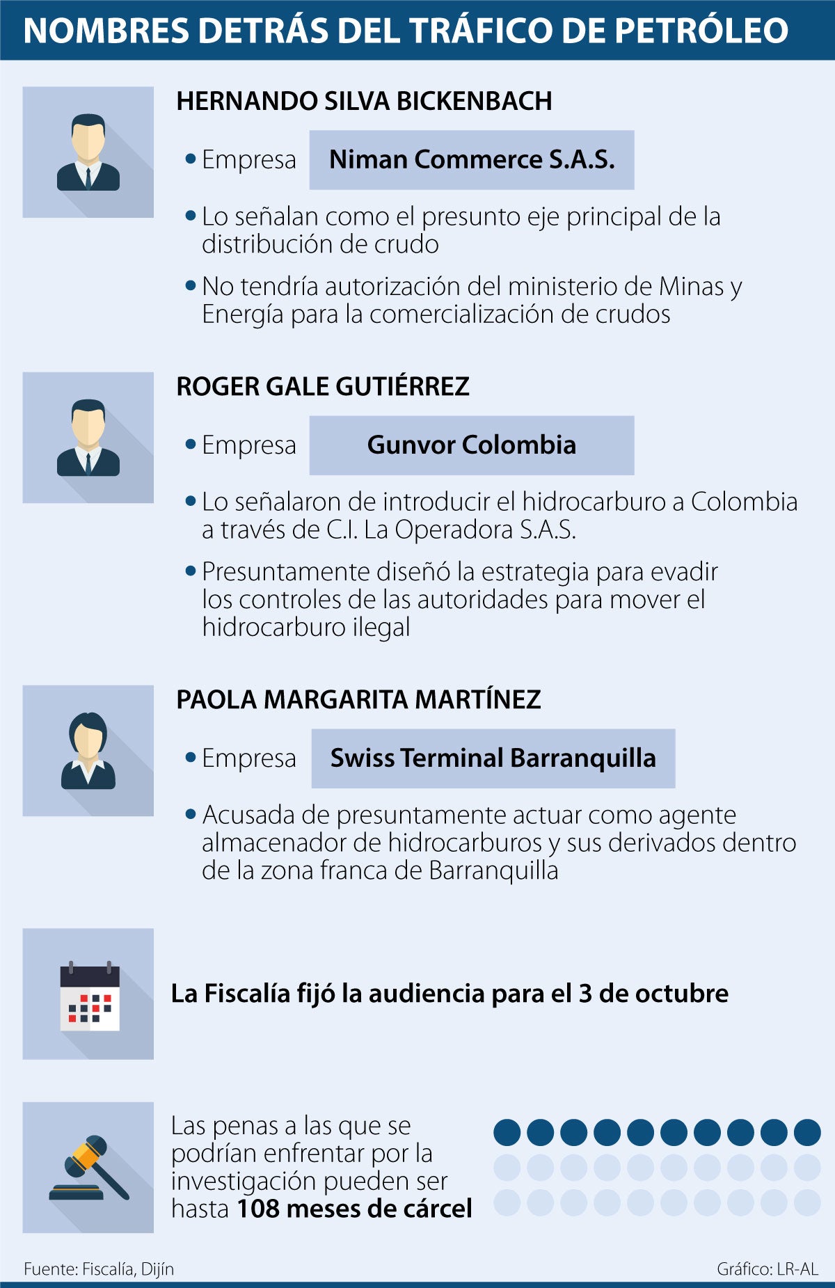 Entre los implicados estarían Hernando Silva Bickenbach quien fue señalado de ser el presunto eje principal de la distribución de crudo. La evidencia señala que el empresario tendría pleno conocimiento de que su empresa Niman Commerce S.A.S. no tenía autorización del Ministerio de Minas y Energía para la comercialización de crudos.