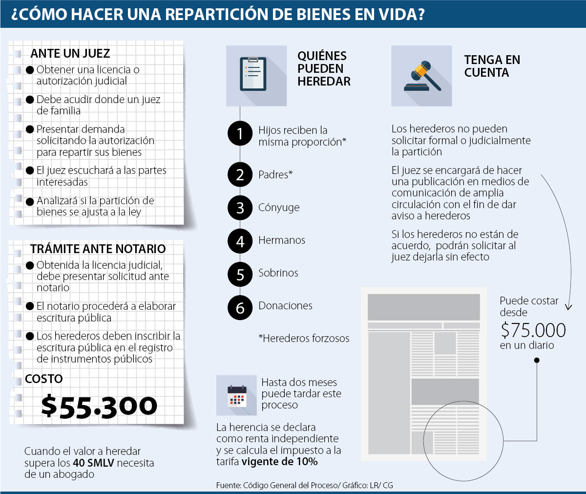 De acuerdo con Marlén Rueda, abogada de familia, como es un acto voluntario, las herencias no se pueden reclamar antes de que la persona fallezca, a menos de que se surta un proceso conocido como repartición de bienes anticipada, en la cual el causante puede entregar parte de sus bienes.