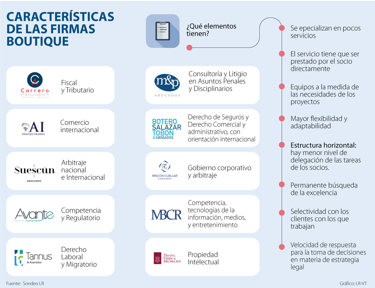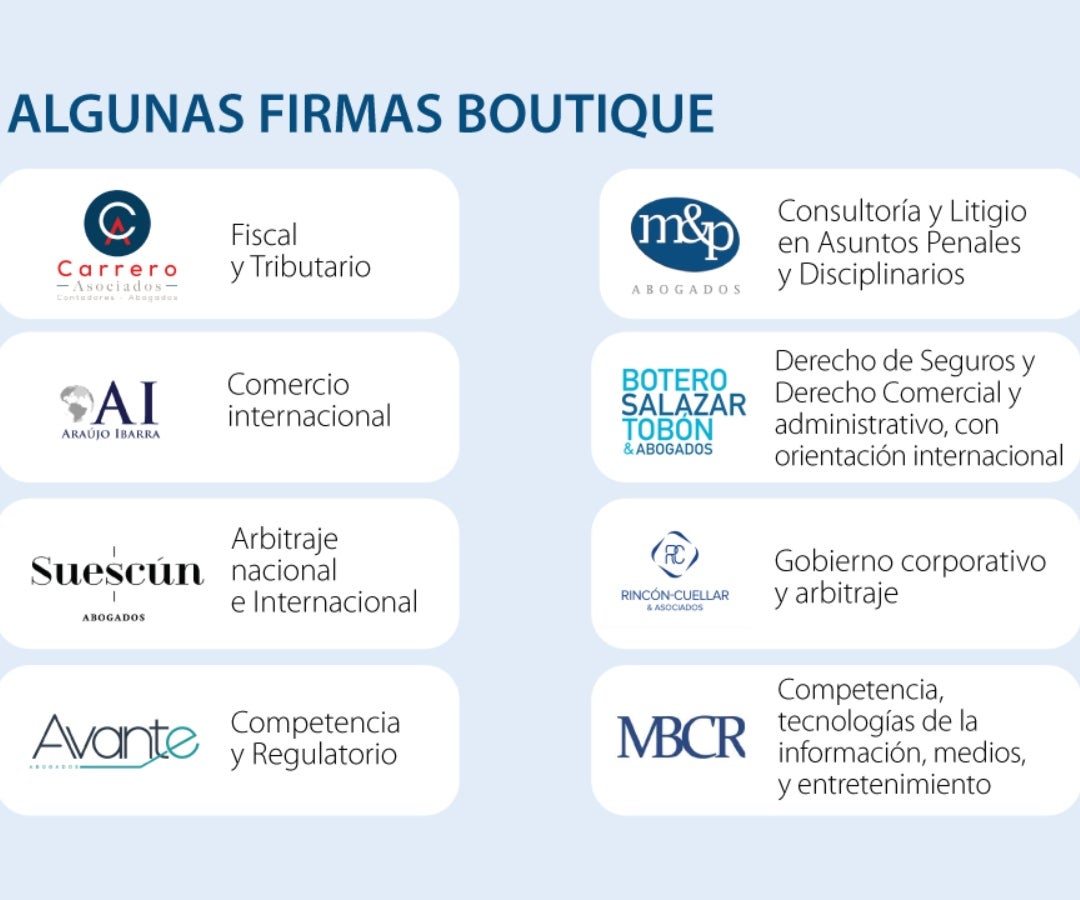 No hace mucho tiempo que a Colombia llegó una nueva forma de hacer derecho a través de firmas especializadas conocidas como boutique. Su idea, la cual había sido traída del Viejo Continente, buscaba que se caracterizaran por trabajar en un área específica del derecho: laboral, penal o tributario, entre otros, y por su especial asesoría con cada uno de sus clientes.