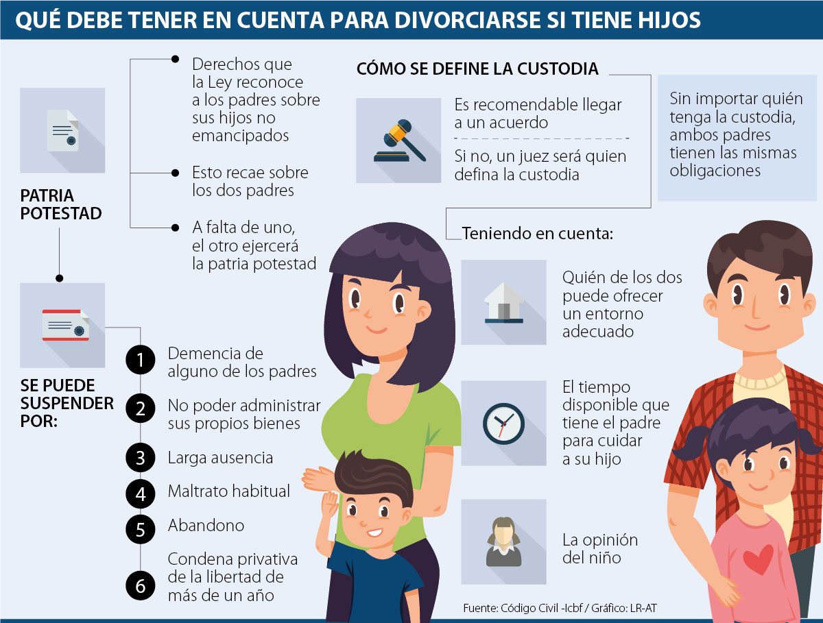Además, el hecho de que un juez le otorgue la custodia a uno de los padres no quiere decir que esa medida no pueda ser revocada, explicó Guillermo Navarro, socio de Navarro Martín Abogados, quien dijo que la autoridad puede retirar este beneficio en varios casos en los que se evidencie que el menor no vive en las condiciones adecuadas.