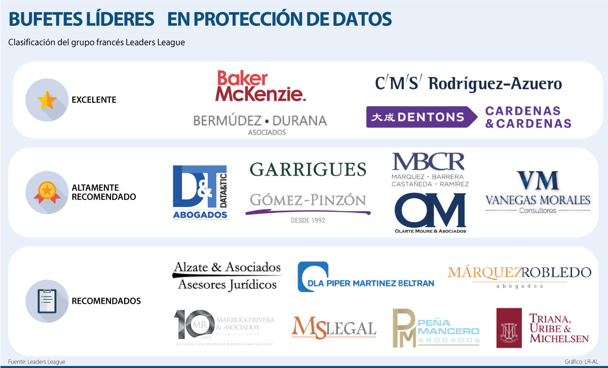 En el campo de altamente recomendados, el grupo de medios francés resaltó la labor de las firmas: Data & Tic, Garrigues, Gómez-Pinzón, Márquez Barrera Castañeda Ramírez, Olarte Moure y Vanegas Morales.