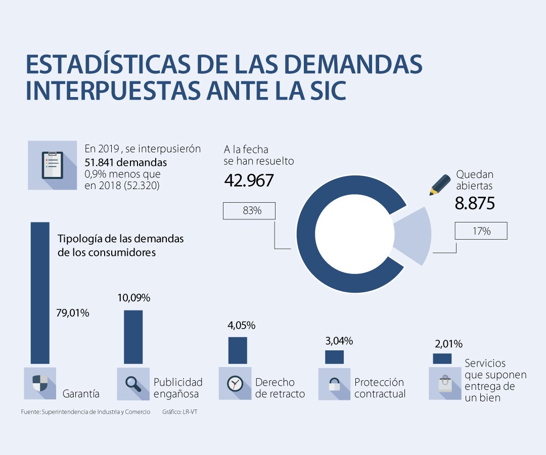 El año pasado, se resolvieron ocho de cada 10 de las demandas que se interpusieron ante la Superintendencia de Industria y Comercio (SIC) puesto que el proceso finalizó en más de 42.900 de estos requerimientos del total de 51.841 que llegaron a la entidad.