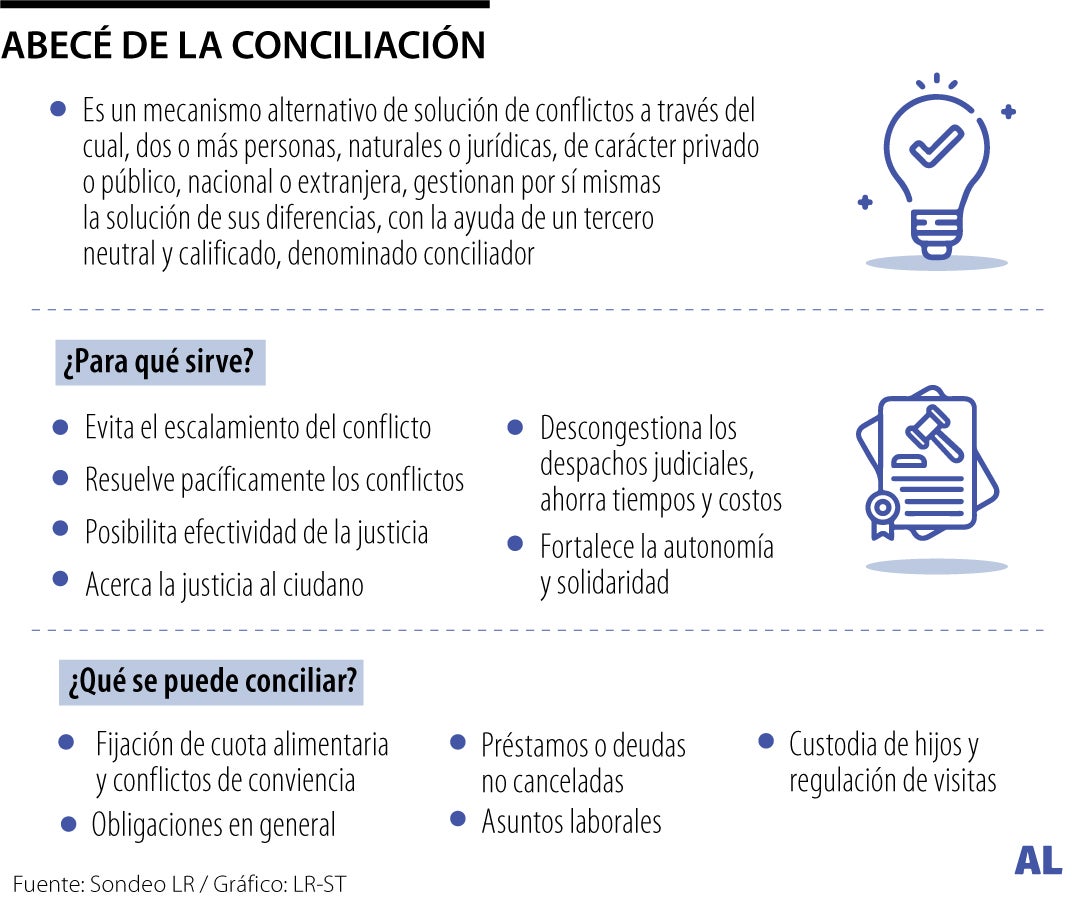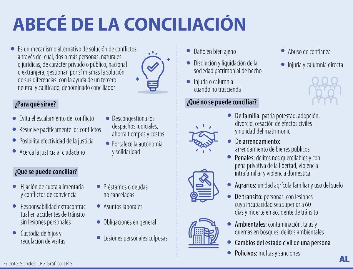 “La conciliación extrajudicial sin intención de demanda tiene por objeto brindar a las partes la posibilidad de resolver de forma directa un eventual conflicto, que para su trámite y aprobación debe seguir las reglas dictadas para las conciliaciones extrajudiciales”, coinciden expertos en la materia.