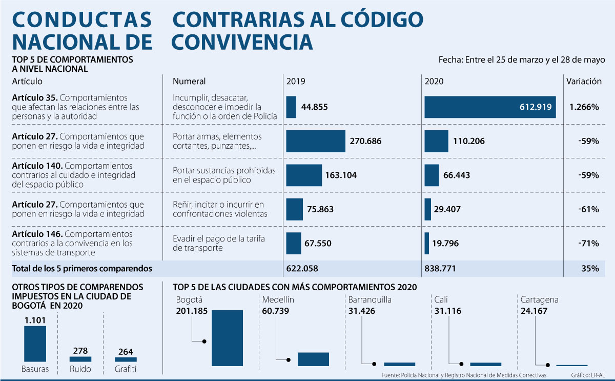 Esto se dio en gran medida a la avalancha de multas impuestas por la Policía a razón del Artículo 35, numeral 2, el cual señala el incumplimiento y desacato a la función o la orden de Policía y que está relacionada con las medidas adoptadas para enfrentar la propagación del contagio por covid-19.