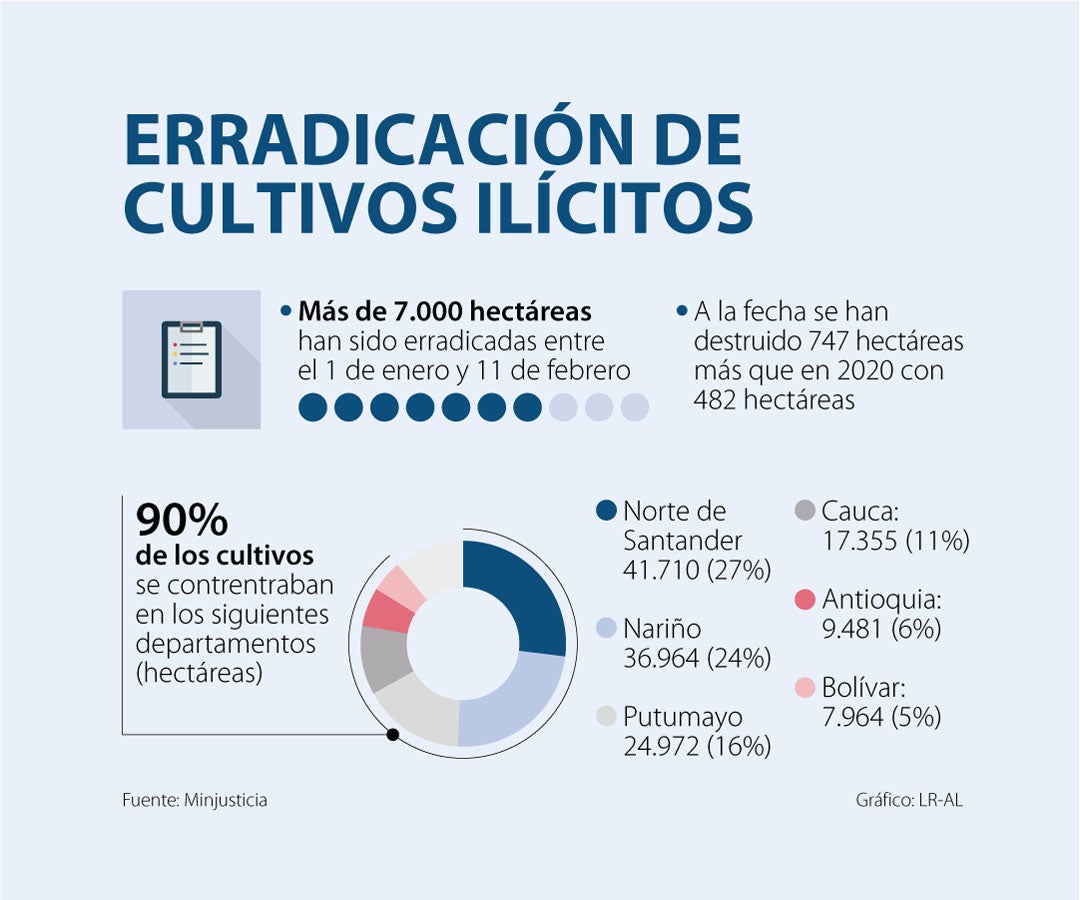 Minjusticia anunció que erradicación de cultivos ilícitos pasó de 83 a 152 hectáreas diarias