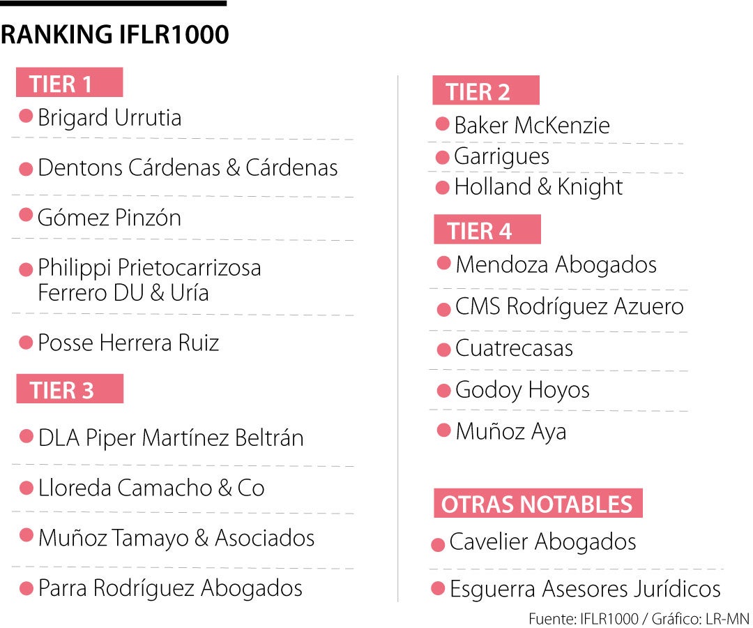 El más reciente escalafón es liderado por Baker McKenzie, Birgard Urrutia, DLA Piper Martínez Beltrán, PPU y Posse Herrera Ruiz