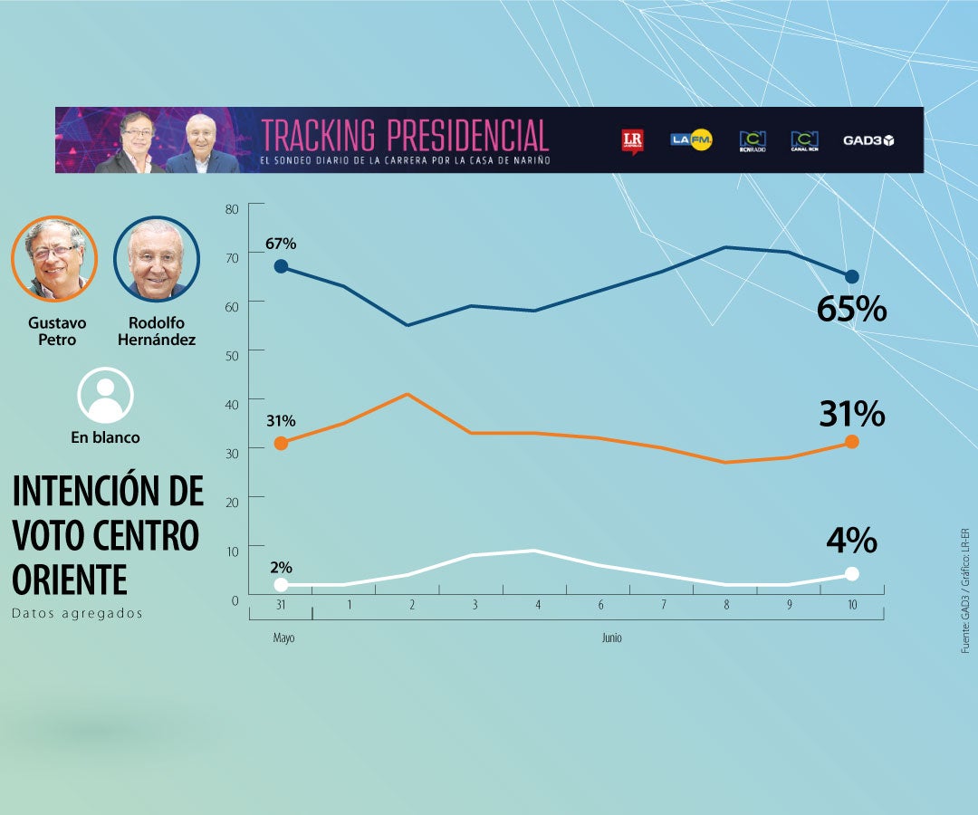 En el Centro Oriente del país, Rodolfo Hernández ocupa una intención de voto de 65%