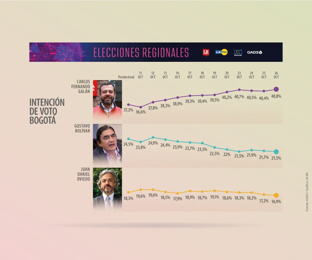 Carlos Fernando Galán mantiene intención de voto para ganar en primera vuelta
