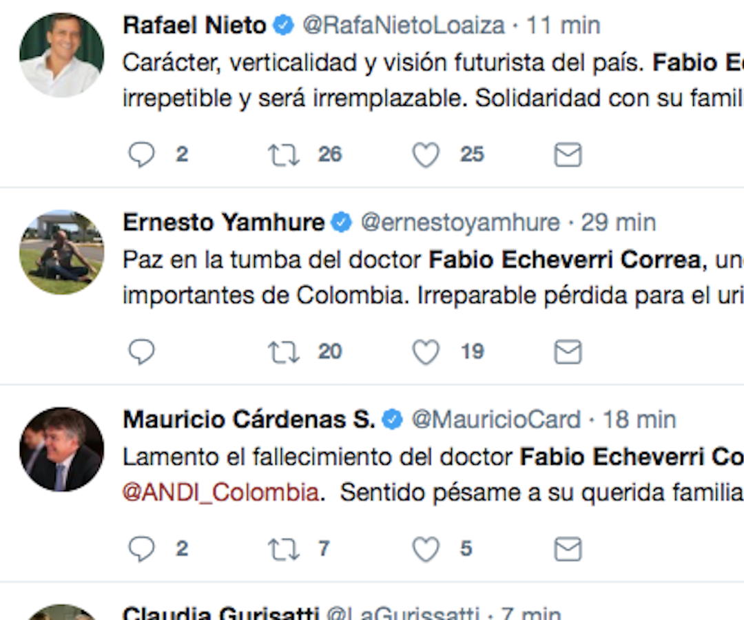 Economistas y políticos despiden a Echeverri recordando por Twitter sus mensajes