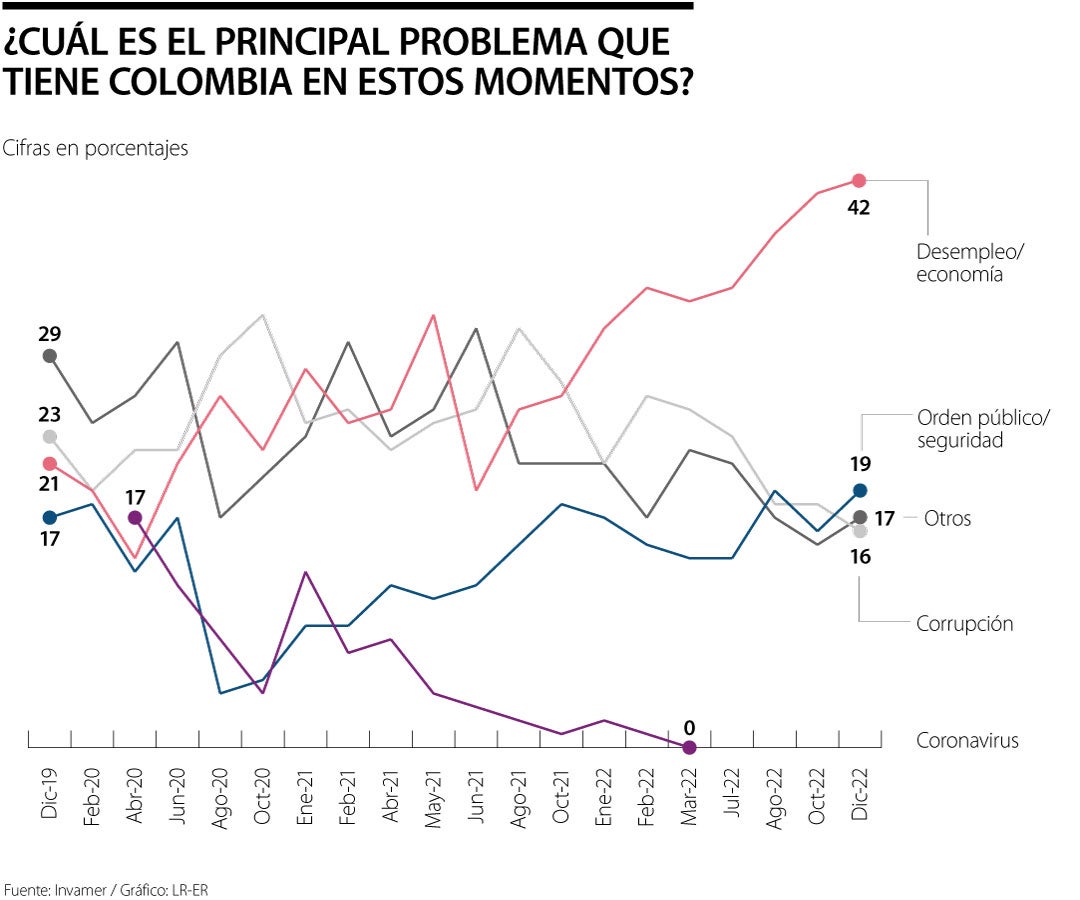 El indicador alcanzó 42% y se mantiene, desde hace varios meses, como el principal problema que evidencian los colombianos
