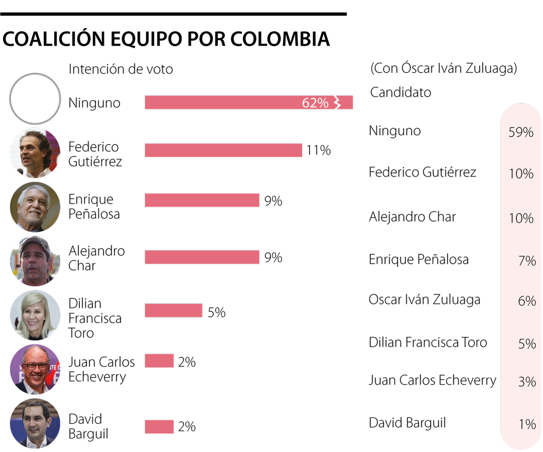 La Gran Encuesta de 2022 reveló que los otros candidatos más opcionados de la Coalición son Alejandro Char y Enrique Peñalosa