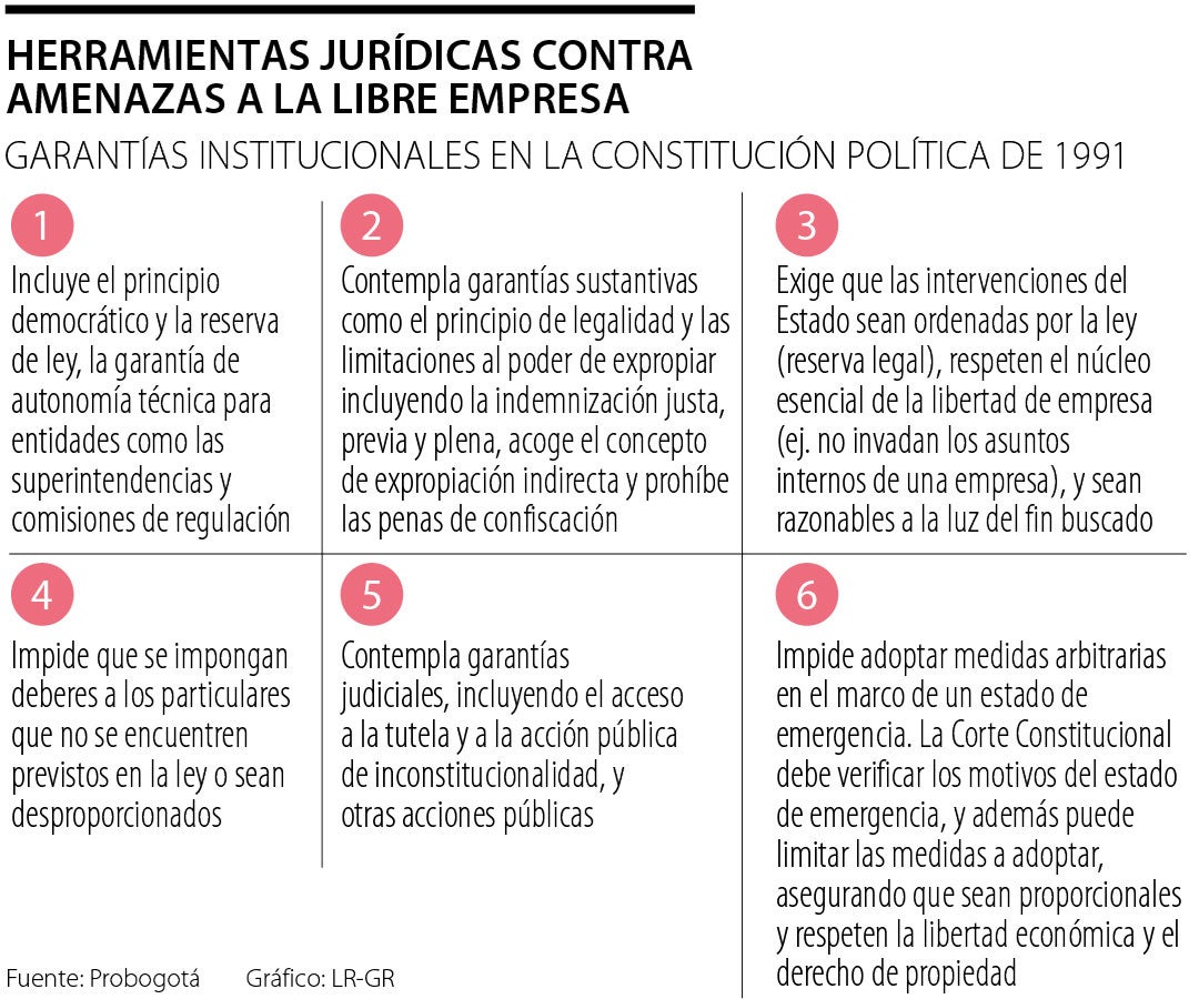 Según el estudio, la constitución respalda las principales garantías institucionales frente a las posibles amenazas que puedan generarse contra la libertad empresarial