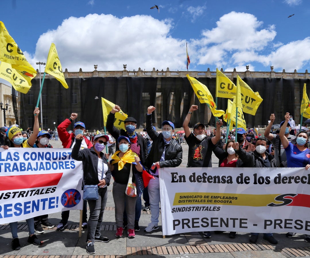 Carrera Séptima se encuentra bloqueada por la jornada de marchas a favor de Petro