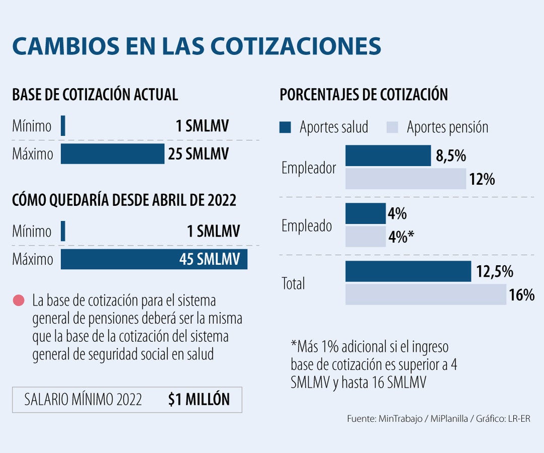 El tope de aportes a salud y pensión podría subir a 45 salarios mínimos desde el próximo mes