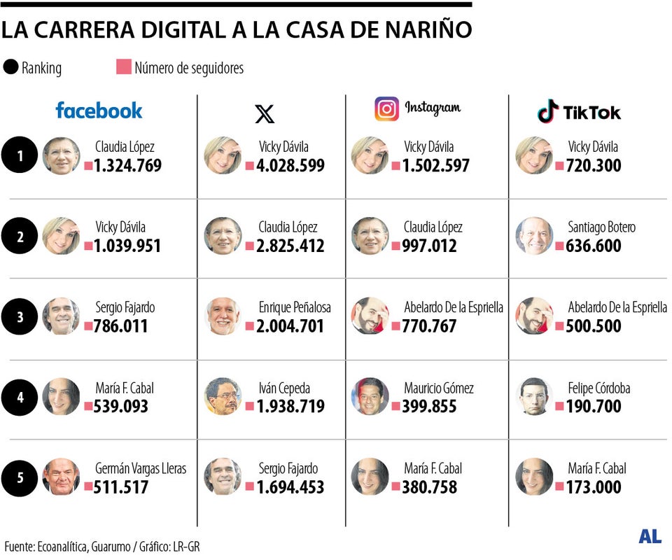De la Espriella y Alejandro Gaviria, los presidenciables con más seguidores en redes